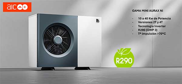 La Aurax Mini Ni es una bomba de calor aire/agua reversible inverter de alta eficiencia, que utiliza el refrigerante ecológico R290. La gama se compone de 7 modelos con potencias térmicas de 10,13 a 40,69 kW y de refrigeración de 7,88 a 29,81 kW, con versiones monofásicas y trifásicas. Para mayores necesidades de potencia, se pueden instalar en configuración de cascada.
