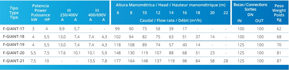Equipada con turbina plástica de una sola pieza, diseñada por PSH. La gama GIANT viene equipada con un cuerpo de bomba con forma logarítmica totalmente en plástico, diseñado por PSH, para conseguir mayor eficiencia hidráulica. La turbina en plástico también la hace más resistente a la cavitación. También disponible con turbina en bronce. Por medidas es intercambiable con nuestra gama FDN-3000.