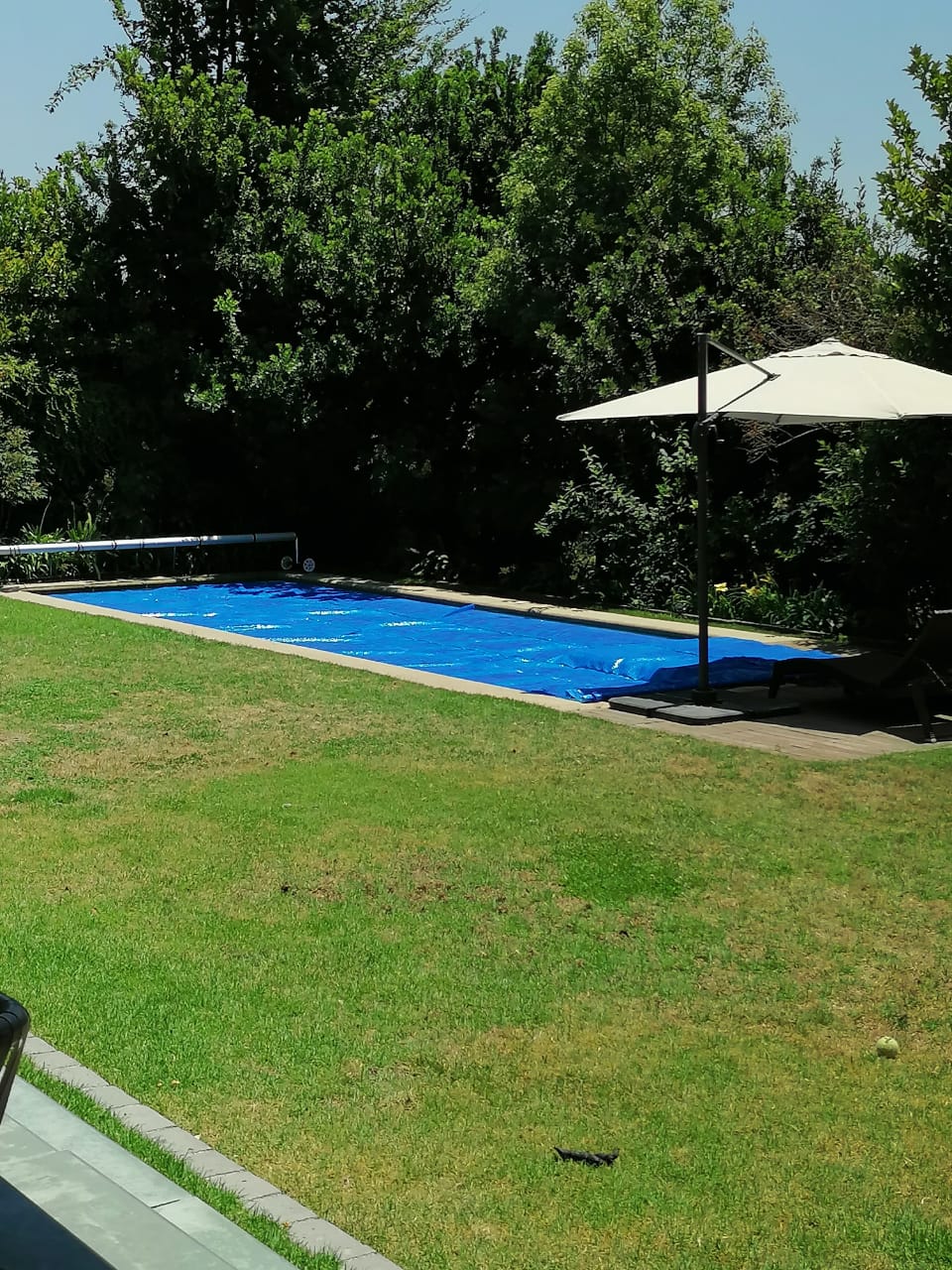 Nota: a) La cara con las burbujas es la que tiene que estar en contacto con el agua, proporcionando el aislamiento necesario. La cara visible sin burbujas es la que dispone de tratamiento anti-UV. b) Cobertor no es apto para pisar ni caminar sobre el. c) Los chorros del agua no deben caer al cobertor. d) No dejar cobertor sobre el pasto, pues este se quemara. e) Usar enrollador para facilitar su colocación y recogida.