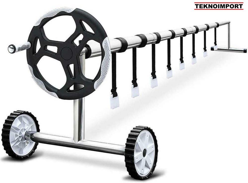 ENROLLADOR PARA CUBIERTA TERMICA : El enrollador hecho de acero inoxidable y tubo central de aluminio le facilitara la colocación y el sacado del cobertor térmica de la piscina.
