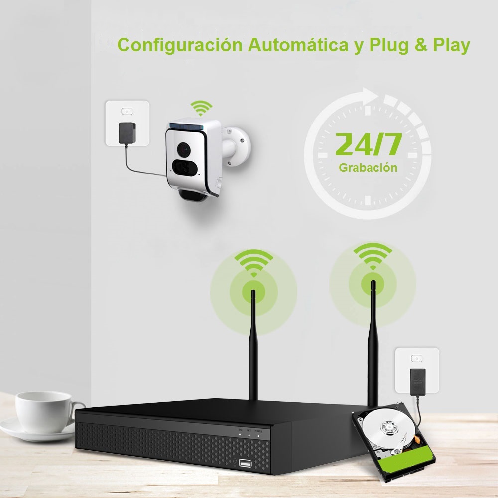 Cámara de vigilancia inalámbrica Domovisión, Kit NVR WiFi de 4 Canales, con cámaras IP 1080P 2.0MP, visión Nocturna, detección de Movimiento, Audio de 2 vías, Plug & Play, monitoreo Remoto.