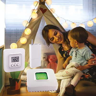 Permite la gestión a distancia de la caldera o bomba de calor no reversible a través de la aplicación móvil TYDOM y retorno de información de la temperatura ambiente.