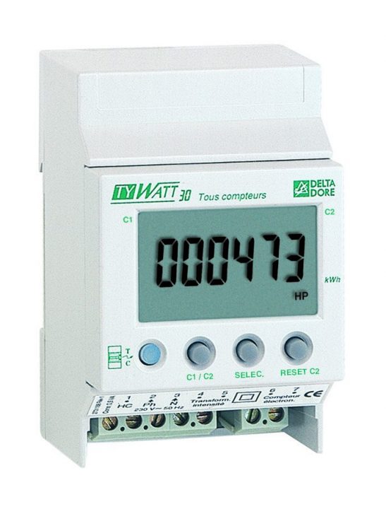 Tywatt 30 permite medir el número de kilowatios-hora consumidos por un circuito de la instalación eléctrica (calefacción, máquinas, motores…) alimentado a 220 V. monofásico.